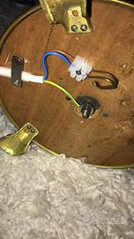 Coppia di candelabri primi del '900, probabile origine ecclesiastica, in ottone dorato (vedi immagini), dotati di impianto elettrico trifase a norma di sicurezza (vedi foto, necessarie connessioni dotate di messa a terra), 10 (!) ghiere ciascuno per lampadine passo E14, il tutto testato e perfettamente funzionante. Il prezzo indicato è per la coppia, singolarmente 100€ ; condizioni come da immagini; dal basso la doratura appare impeccabile (vedere foto), quindi tenerne conto; per la consegna in zona Roma consiglio il ritiro a mano, diversamente ci accordiamo.