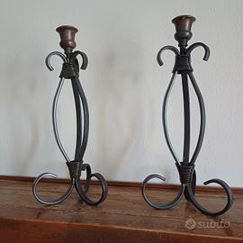 candelabri coppia in ferro battuto e rame