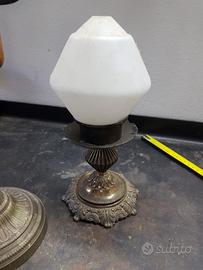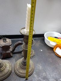 Vendo per inutilizzo coppia di candelabri in ottone insieme includo anche portacandele in legno senza parte superiore e al altro porta lampada Senza impianto elettrico