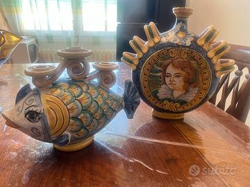 Vendesi due vandelabri in ceramica fatti a ma No e decorati a mano