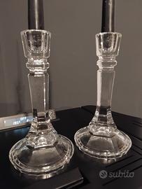 Due candelabri in cristallo, non presentano graffi tranne qualche segno poco visibile a occhio nudo dove si inserisce la candela. Vedi foto