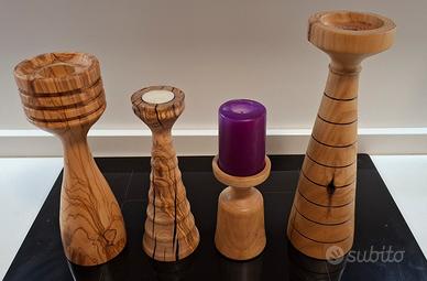 Candelabri in legno di diverse forme e misure