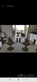Candelabri in peltro anni 60 con porcellana decorata. vendita in blocco