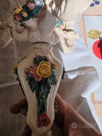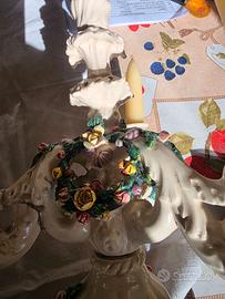 Splendidi Candelabri in porcellama a 4 Candele, sembrano uguli ma le decorazioni delicate di fiori e tralci li distinguono. Adattisimi ad una tavola elegante. Dimensioni 46 x 25 x 25 Ritiro anche a mano Roma Metro Policlinico