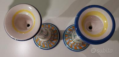 Coppia di (Due) Candelabri in ceramica l’Antica di Deruta, altezza cm 27. Stupendi porta candela ma, anche, come lumi con un semplice montaggio