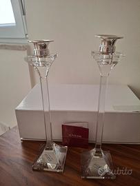 coppia di candelabri sovrani nuovi con confezione originale e certificato di autenticità. vetro e argento