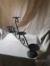 Candelabro a 5 braccia in stile ispanico realizzato in ferro battuto dipinto di nero opaco ideale come importante centro tavola sia per il terrazzo che per il living per creare un tocco di atmosfera. Dimensioni. lunghezza 65 cm altezza 28 cm, profondità 9 cm. Nuovo