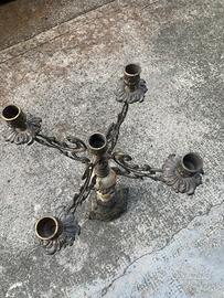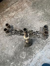 Bellissimo candelabro dotato di 4 bracci, in bronzo e onice, porta 5 candele, design elaborato, con volute e base decorata, suggerisce uno stile neoclassico o barocco, mai utilizzato