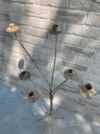 Candelabro da terra per 6 candele in metallo verniciato. Oggetto molto d’effetto. Shabby Chic, Country Style, Vintage. Misure: 55x40x118 cm