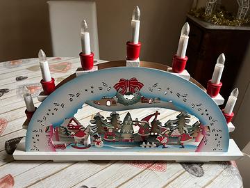 Deliziiso candelabro di legno con decorazioni