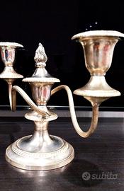 Candelabro Doppio Argentato Vintage Stile Georgian