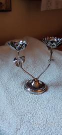 elegante candelabro centro tavola a due fiamme in metallo color argento anni 60 70 nuovo mai usato senza difetti