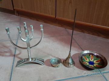 candeliere Menorah in ottone con bracci ruotabili in diverse composizioni 17x12x9 cm