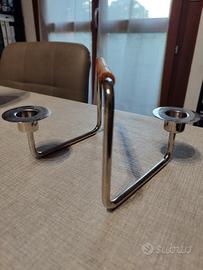 Design elegante e minimale, tipico degli anni ’70/’80, realizzato in metallo cromato con impugnatura rivestita in cuoio.