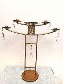 ELEGANTE CANDELABRO A 5 FUOCHI. REALIZZATO IN METALLO E ARICCHITO CON PENDENTI DI CRISTALLO. OGGETTO RARO E ORIGINALE. Condizione come dalle foto.