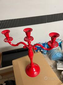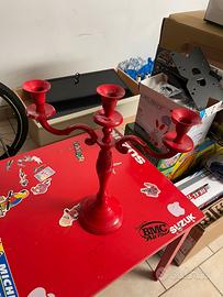 Candelabro rosso, bell’oggetto di arredamento, vendo causa cambio colori in casa, regalo scatola da 50 candele