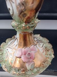 Vendo elegante candelabro in ceramica,stile Capodimonte con finiture dorate e decorazioni floreali anni 50/60, design a tre bracci, dettagli floreali dipinti a mano. Perfette condizioni.