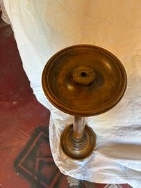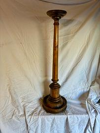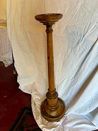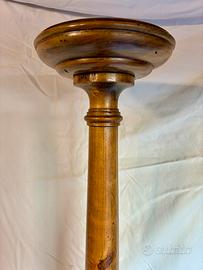 Candelabro, portacandela antico. Gia’ predisposto come base per lampada da terra. Stato ottimo. Colore noce chiaro. Altezza 120 cm. Base cm 30 .