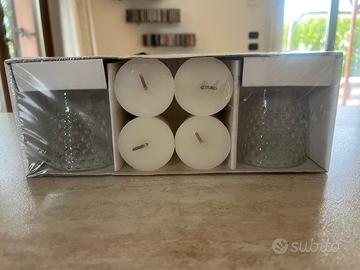 Vendo 4 set da 4 candele al profumo di vaniglia con 2 bicchieri portacandela. Nuovi. Ancora imballati. Altezza 4.5 cm 15€ a set 50€ tutti e 4