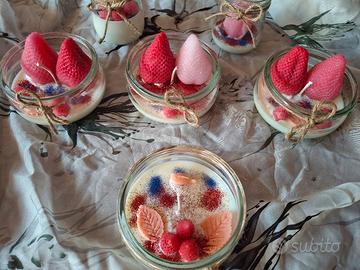 Vendo candele Artigianali in cera di soia , cera di palma e cera di api, decorate e profumate con oli essenziali. Il colore e la quantità di cera versata può variare, perché tutto fatto a mano, il prezzo varia secondo la grandezza del contenitore. per informazioni e richieste cortesemente inviare un messaggio . Grazie