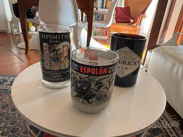 bellissime candele realizzate a mano con bottiglie di gin usando cera di soia naturale e stoppino in legno con leggera profumazione.Ideale per riciclo creativo e regali molto graditi. Su richiesta eseguo realizzazione di candele con bottiglie di gin perfettamente tagliate a vostra scelta. Prezzo cadauna.Eventuale spedizione con tutto Subito