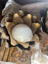 2 candele incastonate dentro un fiore di metallo e 4 portancandele a forma di fiore in vetro