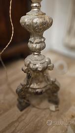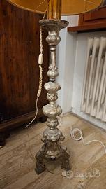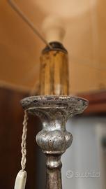 Vendo due candelieri da terra, adattati a lampada, rivestiti color argentato, completi di paralume. Lampade perfettamente funzionanti.