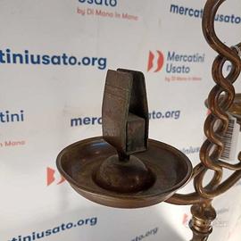 Candeliere in ottone con pinza porta scheggia. Stelo a torcione bronzato.