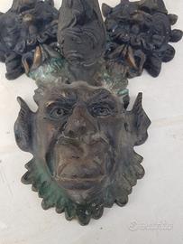vendo candeliere israeliano " Chanukkiyah" a 18 candele in rame originale " Menorah Karshi" con basamento in bronzo raffigurante tre maschere apotropaiche . peso kg.6 altezza cm.65 larghezza cm.55. prezzo 300 Euro tel. 3394451471
