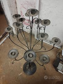 Candeliere artigianale molto bello in metallo per 13 candele. Dimensioni: Diametro: Base: 25 cm / Corona: 53 cm, Altezza: 109 cm.