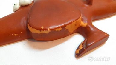 Simpatico cane bassotto vintage in resina, con 2 ganci sul corpo per appendere qualcosa.
