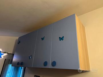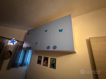Vendo cameretta per cambio abitazione,acquistata 3 anni fa ed un’anno fa cambiato i materassi e pagati 180 euro l’uno,no perditempo il prezzo di acquisto nuovo 2200 euro la vendo al primo che viene a smontarla a 750 compreso materassi,per qualsiasi visione e domande sono a disposizione,misure a ponte 3,70 m di lunghezza altezza 198 cm pensili 205 altezza 96 cm
