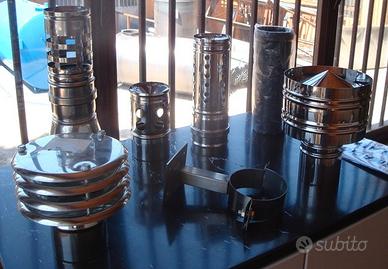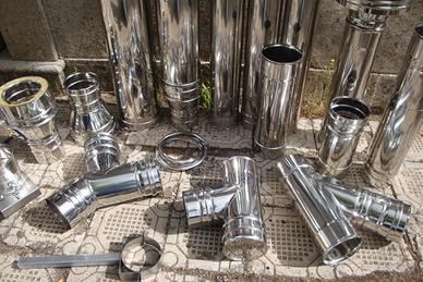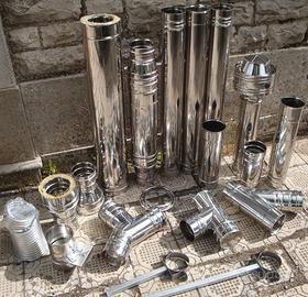 Tubi inox doppia parete con coibentazione in lana di roccia. Ideali per la realizzazione di canne fumarie per scarico fumi di camini, termocamini, caldaie, stufe a legna, stufe a pellets, forni etc. etc. Sono disponibili elementi lineari, gomiti di varie gradazioni, raccordi d'ispezione con scarico condensa, vari modelli di comignolo, riduzioni, tramogge, pezzi speciali e raccordi su misura, fascette di bloccaggio, collari e staffe per fissaggio a parete. Disponibili sia coibentati che monoparete. Per informazioni su misure e prezzi rispondere all'annuncio o contattare telefonicamente.