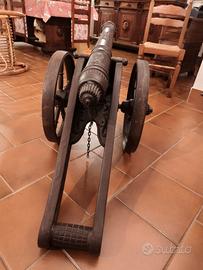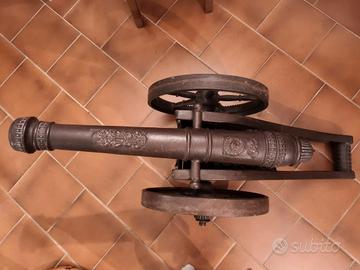 bellissimo cannone in perfette condizioni, ovviamente semplice articolo d arredo, finemente lavorato e con apprezzabili dettagli. introvabile. date le dimensioni, impossibile spedire. 140 cm lunghezza misura totale.. larghezza 60 cm. canna lunghezza 95 cm. Diametro dietro diametro 13 cm cm davanti 11 cm. Diametro ruote 50 cm.