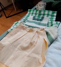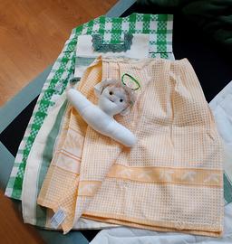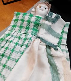 bambolina da appendere con n. tre abitini fatti con canovacci ad uso asciuga mani non sono stati stati lavati i canovacci