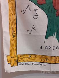 Canovaccio da cucina a tema Cip e Ciop. Probabile tessuto di cotone e lino ma non c'è etichetta tessuto. Reca la scritta Walt Disney productions 1961. Originale anni 60. In ottime condizioni