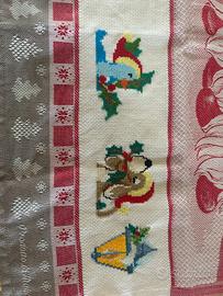 Canovaccio natalizio con ricami a mano a punto croce, ideale per decorare la cucina durante le feste o come idea regalo unica e artigianale. croce 🎄✨