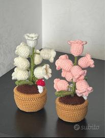 Bellissima piantina di mughetti all'uncinetto, perfetti per la decorazione di ogni stanza.