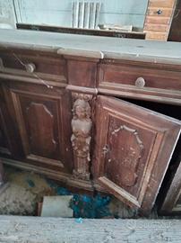 Canterano con libreria primi del Novecento in noce, originariamente si trovava in un palazzo di Cortona. Il canterano misura 216x43 alto 100, la libreria che va sopra misura 206x30 alta 160