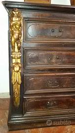 antico canterano cassettone barocco Luigi XIV fine 600, in patina.