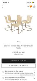 Vendo set di 4 sedie Tecta B25 originali, colore beige, seduta in per cambio progetto interno.