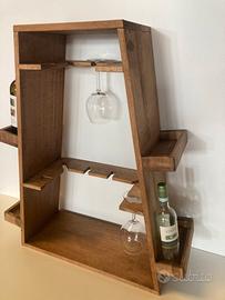 Portabottiglie in legno , pezzo artigianale da appendere o sopramobile fornito di ganci muro .