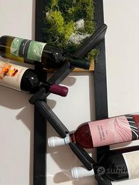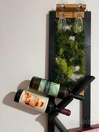 Vendo elegante portabottiglie da parete dal design moderno e originale. La struttura è realizzata in legno, con una raffinata decorazione verde effetto vegetazione che dona un tocco naturale e di grande impatto estetico.