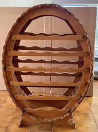 Cantinetta porta bottiglie in legno a forma di botte, contiene fino a 24 bottiglie, altezza 86cm, larghezza 60 cm, profondità 24,5 cm.