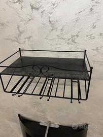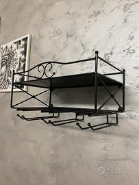 Cantinetta in ferro nera porta bottiglie di vino e porta calici