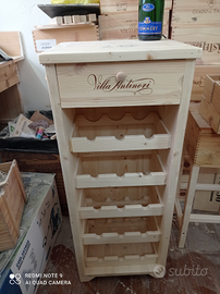 Cantinetta portabottiglie con cassetto in stile Wine Design. L'articolo viene venduto privo di verniciatura, chi lo volesse verniciato, la spesa da aggiungere è di 50€.