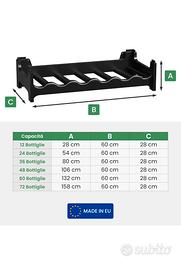 Vendo 20 moduli, acquistabili anche singolarmente, di portabottiglie modulari in plastica causa acquisto cantinetta frigo. Di seguito la descrizione del prodotto su Amazon. Cantinetta Impilabile Componibile: Scaffale Portavino Salvaspazio ARTECSIS con design moderno e funzionale. Scaffale Portabottiglie Pratico: Ti basta impilare i ripiani uno sull’altro. Montaggio Instantaneo senza viti! Resistente + Stabile: Plastica dura ideale in casa come in cantina/garage immune all’umidità. Perfetta Conservazione Vino: Tappo sempre umido anche per Spumante, Champagne, Acqua. Struttura Modulare: Ogni mensola ha una capacità di 6 slot (60 x 25 x 15 cm)