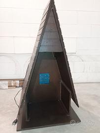 Vendo per inutilizzo capanna natalizia in legno, colore marrone scuro, Altezza 110cm. Larghezza 60cm. Profondità 45cm. All'interno di trova una lampadina con cavo per illuminare la capanna. Incluse 6 statue altezza 20cm circa. Ritiro a Bagnatica.