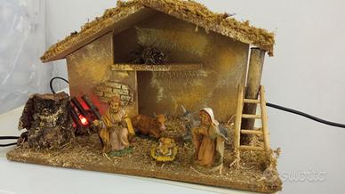 Vendo capanna con Natività, usata una volta, Bambinello removibile, luce del fuocherello funzionante come da foto, con imballo . Misure in cm: larga 39, profonda 19,5, alta 23 . Cavo lungo cm 125. Eventualmente consegna a mano zona Udine terminal nord, Udine nord/stadio, città fiera.