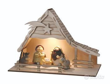 Il presepe è illuminato con l'unità solare “Everlight” inclusa che fornisce un'illuminazione d'atmosfera per il presepe e lo fa risplendere in una luce calda e natalizia! L'unità solare contiene il modulo solare, il LED bianco caldo e la scheda di ricarica completamente assemblata, compresa la batteria. L'unità solare “Everlight” è dotata di un sensore crepuscolare e si accende automaticamente al crepuscolo. Una volta assemblata, “Everlight” viene semplicemente appesa al presepe e illumina le figure della natività. L'unità solare può essere facilmente rimossa dal lettino e ricaricata in un luogo soleggiato. Grazie ai cavi preassemblati e alle parti in compensato tagliate al laser, l'unità solare è molto facile da montare. Dimensioni: 200 x 105 x 135 mm. Il prezzo è la metà del prezzo reale, causa cessata attività.